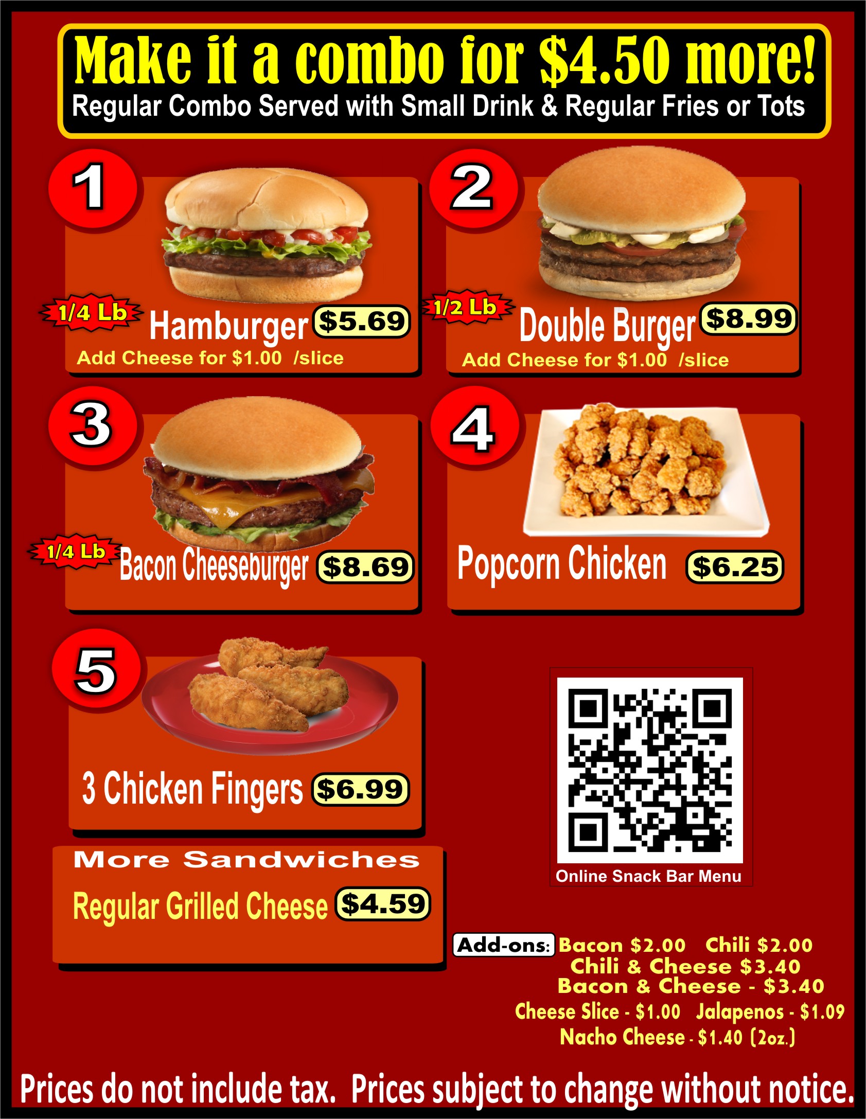 Town & Country Snack Bar Menu